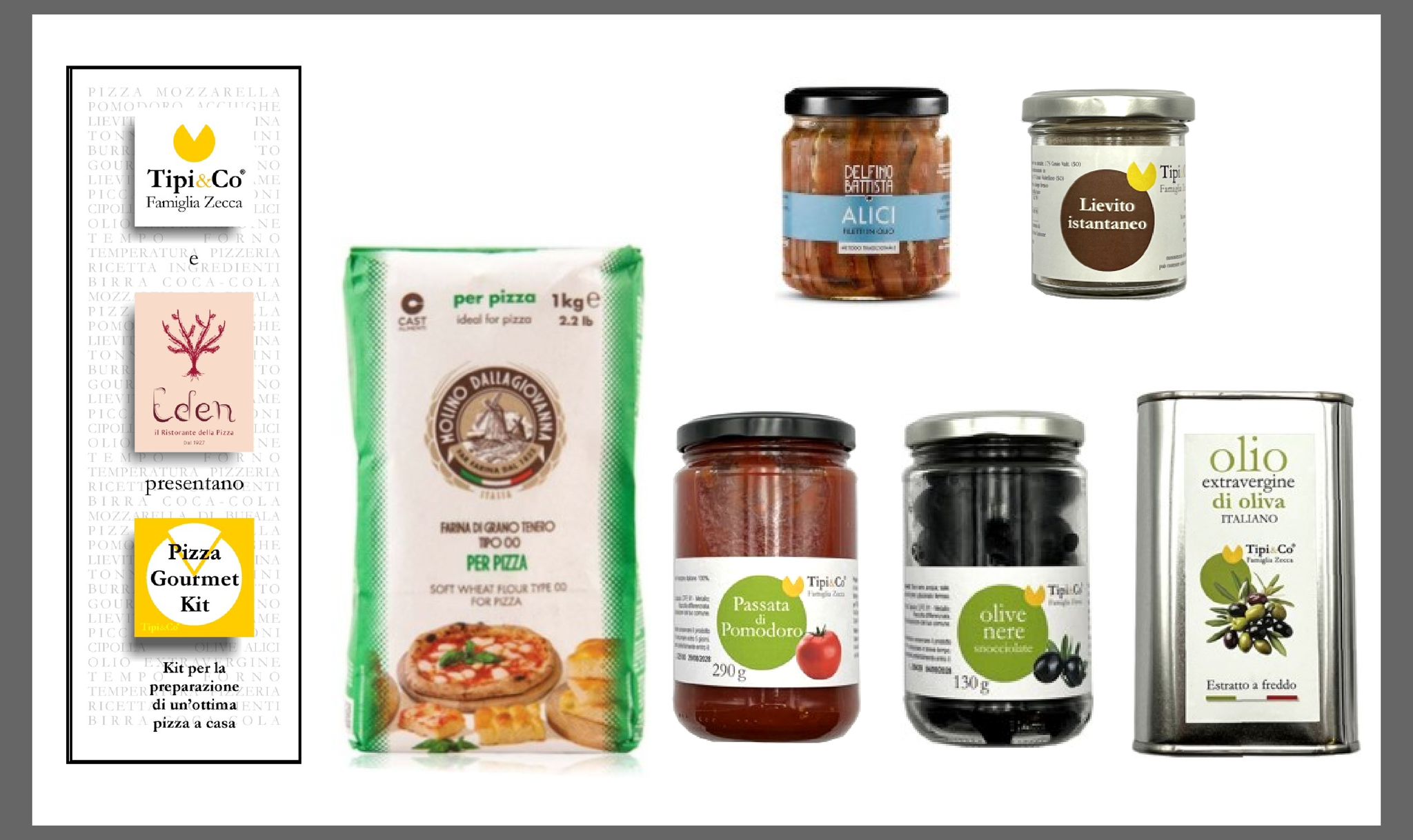 Dalla collaborazione con Tipi&Co nasce una confezione regalo che porta l’autentica esperienza della pizza fatta in casa direttamente nella tua cucina. All’interno troverai ingredienti di alta qualità per l’impasto e parte della farcitura, oltre a una ricetta esclusiva con video tutorial: Ivan ti guiderà passo dopo passo, svelandoti i segreti per una pizza da vero maestro.